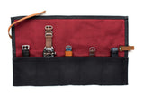 The canvas watch-rolls are all fully lined with microfiber suede. This is the perfect material to keep your watches scratch-free and clean on the go. The leather strap makes sure you can adjust the size of the watch-roll in accordance of how many watches you take with you.