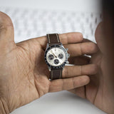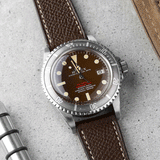 Monochrome - Grained Calfskin Watch Strap - Brown (White Stitch)