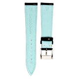 Estas correas de piel de becerro lisa están disponibles en cuatro tamaños estándar: 18/16 mm, 19/16 mm, 20/16 mm y 21/16 mm, con una longitud media de 115/75 mm. El grosor total es de 2,2 mm.