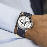 Monochrome - Smooth Calfskin Watch Strap - Dark Blue (White Stitch)